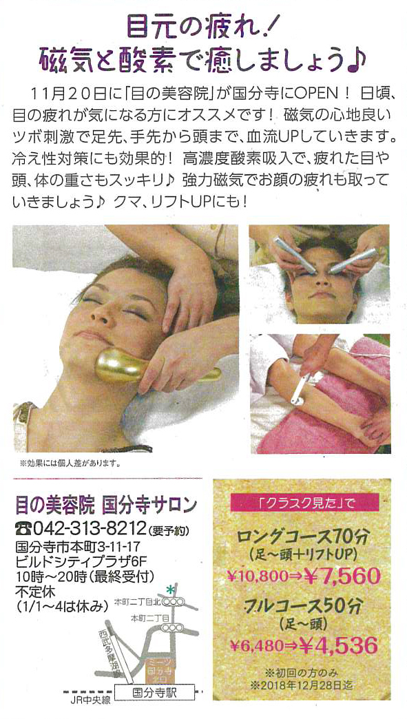 「目の美容院 国分寺サロン」(国分寺市本町3、TEL 042-313-8212)が11月20日、国分寺駅北口にオープンした。